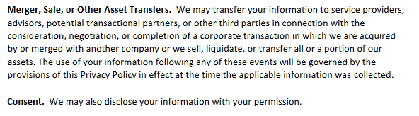 You gotta love the above "bonus consent" clause. In addition to doing whatever they want with the data you've given to them to use in a fully unrestricted manner, Parlor also MAY ask for your occasional permission.